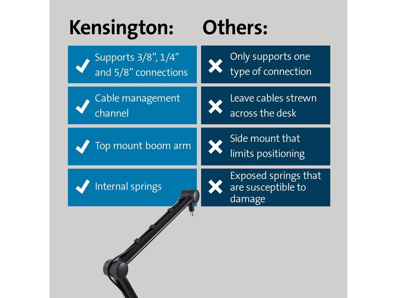 Kensington A1020 Mounting Arm for Microphone, Webcam, Light, Video Conferencing System, Camera, Ring Light - Adjustable Height