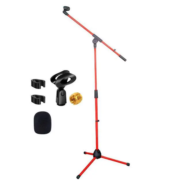Built from sturdy metal, this microphone boom stand features sturdy legs with rubber caps, ensuring stability on any surface. Its reinforced clutch supports up to 4.5 lbs. Designed for convenience, the pedestal para microfono collapses for easy assembly and storage, making it highly portable. Enhance your audio setup with this reliable, adjustable, and portable floor mic stand.