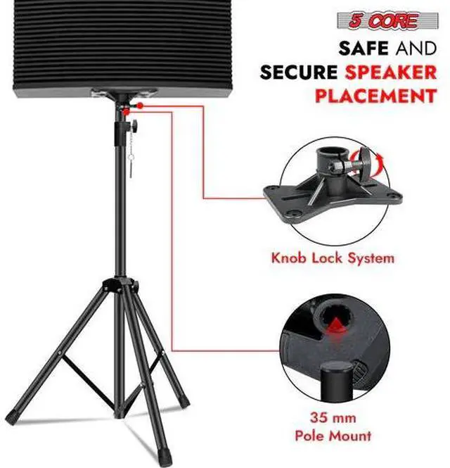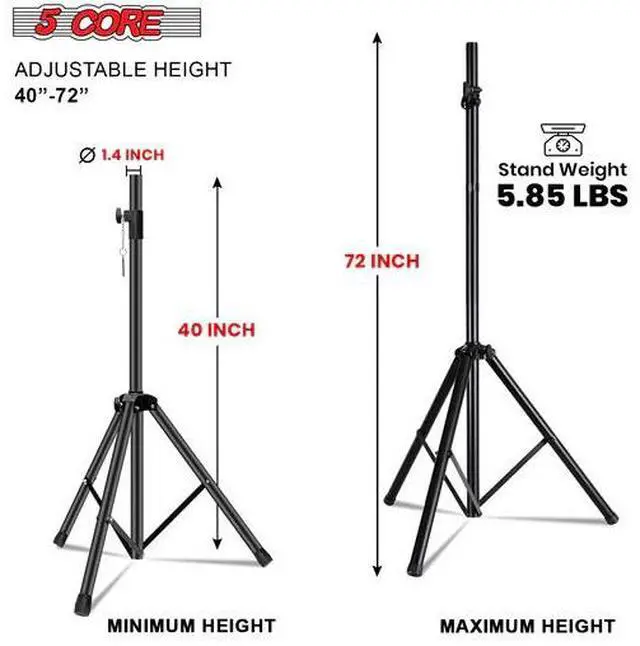 5 Core Speaker Stand Pair Height Adjustable Universal PA DJ Tripod Studio Monitor Stands Heavy Duty w 35mm Compatible Insert for Home On Stage In Studio Use Black - SS HD 2PK BLK WOB