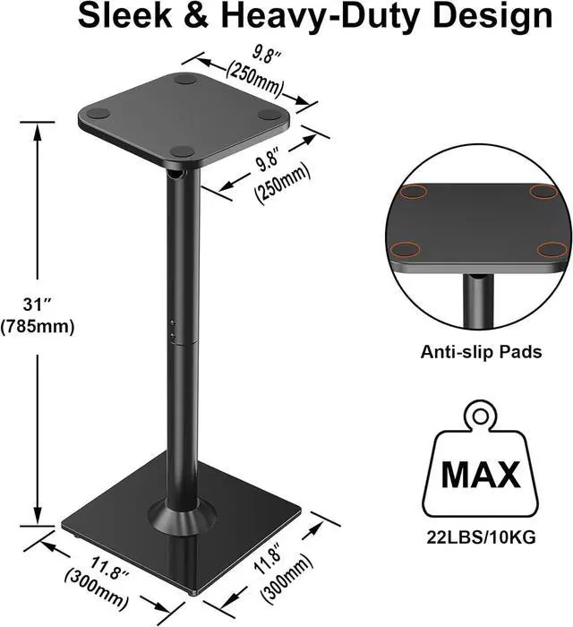 Ideal Speaker Positioning: Speaker stands pair with heavy-duty materials and rubber pads to minimize undesirable vibration to let your speakers deliver pristine, room-filling sound. The speaker stands elevate your speaker closer to the ear level for the best experience