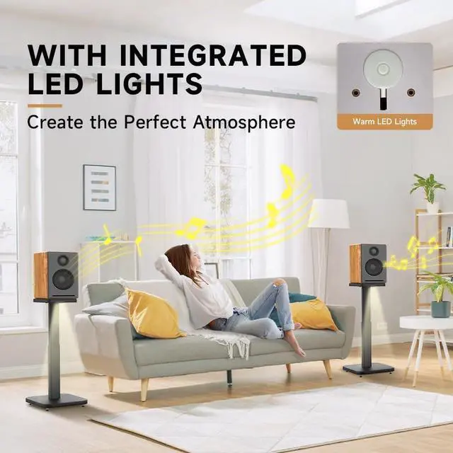 Warm LED-Illuminated Ambiance: Our universal speaker stands built-in warm LED lights set perfect mood for movie nights and parties, complementing your surround sound system while adding a modern touch to your décor