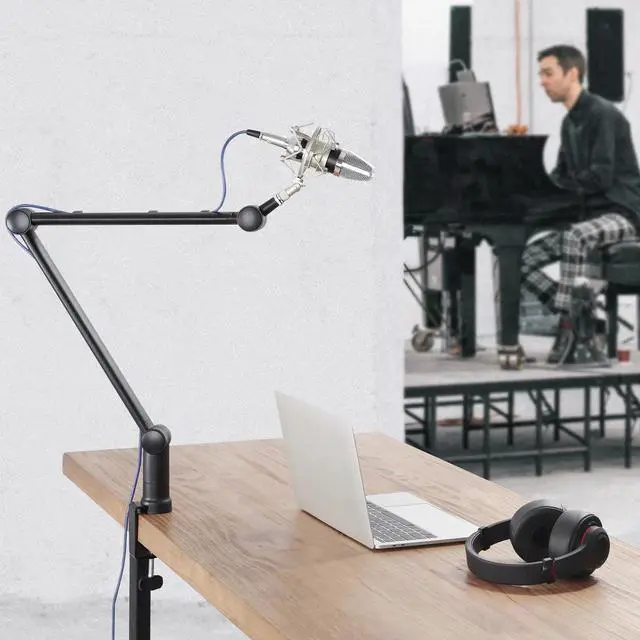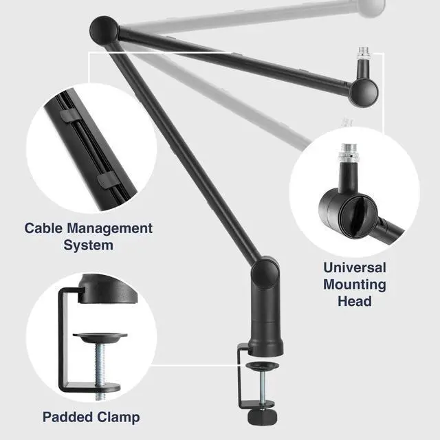 Super flexible height and position adjustments allow you to achieve the best sound reproduction for audio and voice recordings. Additionally, the pick up and go feature of the boom arm simplifies live outdoor podcasts and streaming. A Clutter-free studioTraditional microphone stands take up valuable space, whereas this boom-arm stand is quickly stored away. Boom arms also help free up desk space. No more stationary microphone stands means freeing up space for other indispensable recording equipment. Fold your boom-arm stand right into your desk when not in use, freeing up ever more space.