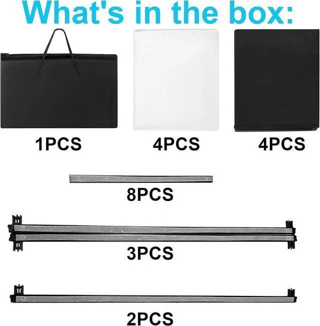 PACKAGE INCLUDES: The DJ facade come with 4 pcs black scrim and 4 pcs white scrim; 13 pcs lightweight metal poles; 1 pcs installation tool; 1 pcs Oversized carry bag; 1 pcs explicit instruction