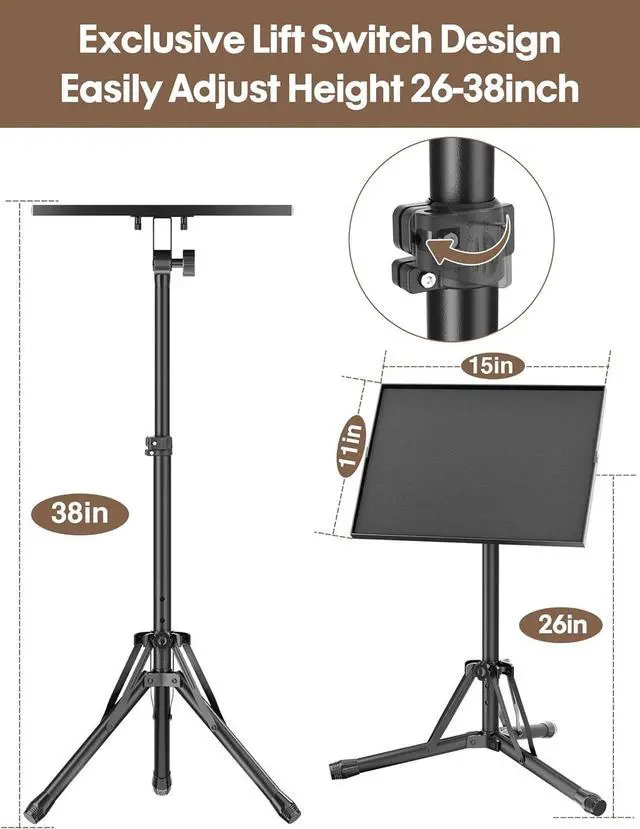 Foldable & Easy to Carry: The portable projector stand features a compact and small footprint design. Comes with a bag and its foldable frame makes it convenient for storage and carrying around. Portable podium stand can be set up in minutes, and is perfect for home, studio, stage, indoor and outdoor movie use