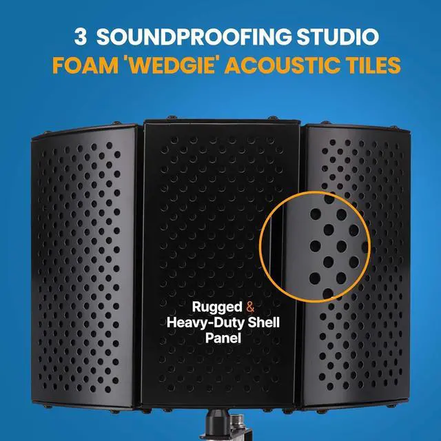 ELIMINATES UNWANTED NOISE: The Foldable Sound Recording Booth Shield features sound dampening foam that blocks unwanted sounds from your recordings. Creates an acoustic boundary around the microphone that improves vocal audio flow