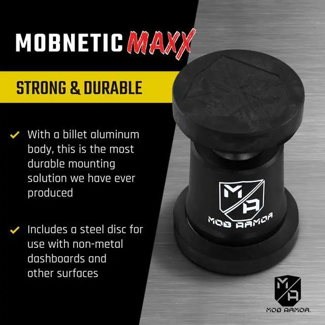 Magnetic Car Phone Holder: Enjoy secure, hands-free phone access with the Mob Armor Magnetic Phone Mount. Suited for truck and jeep owners as well as anyone who spends a great deal of time on the road, the MobNetic Maxx promotes safe driving and convenience.