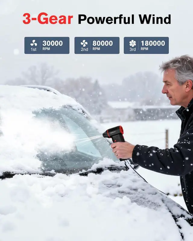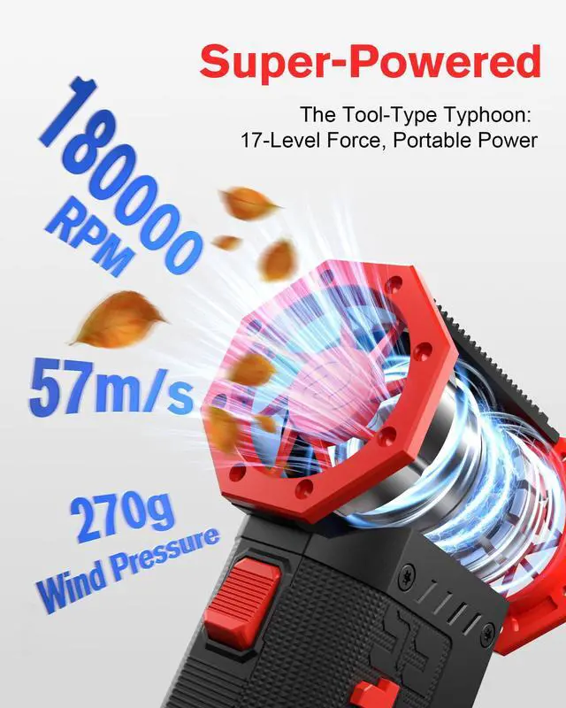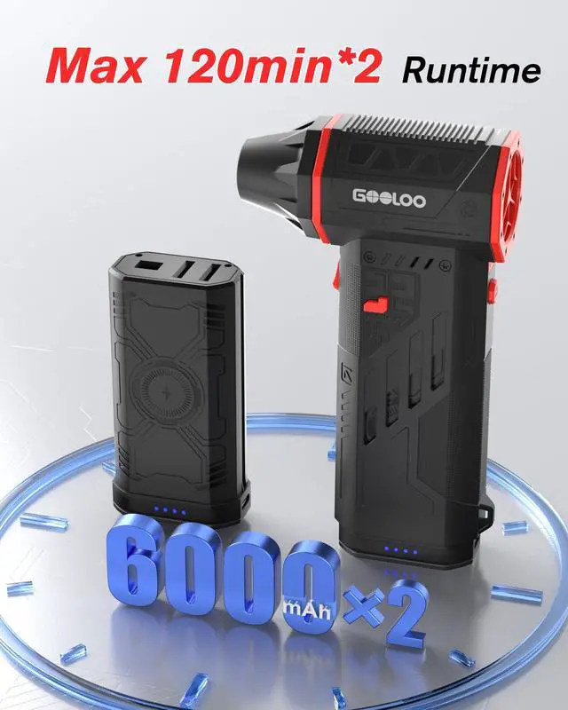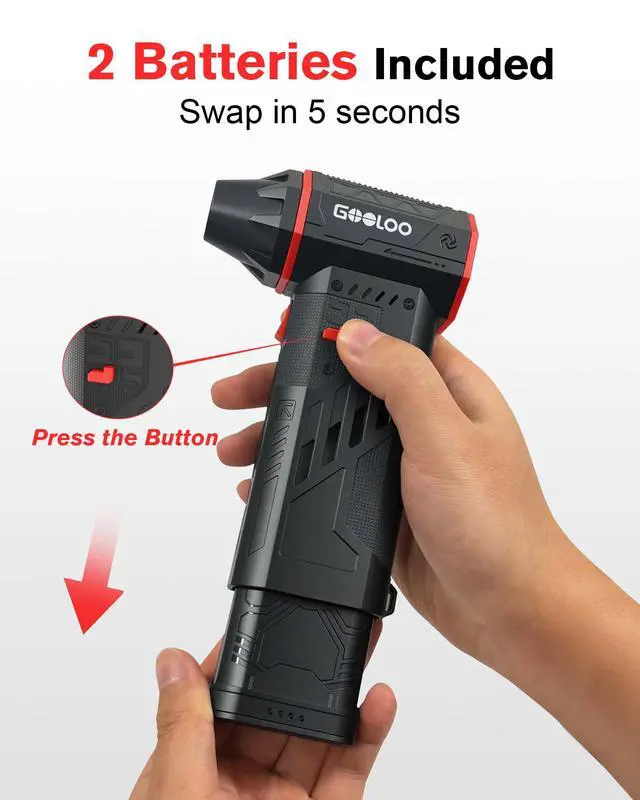 Gooloo F5 electric duster ensures continuous cleaning with its dual removable battery system: once one battery depletes, simply swap in the other fully-charged batteryno more waiting. Each battery recharges in just 2.5 hours via fast charging (device cannot be used while charging). Powered by a high-speed 180,000 RPM brushless motor, it generates a powerful 57 m/s airflow and offers three speed settings to handle everything from stubborn debris to delicate electronics, delivering up to 120 minutes of runtime. Equipped with four interchangeable nozzles, it adapts to a wide range of tasksfrom keyboards and PCs to car interiors and outdoor usemaking it the versatile cleaning tool for home, office, and travel. By replacing disposable air cans, this rechargeable duster provides an eco-friendly, cost-effective solution that reduces waste. Weighing only 0.81 lbs, its lightweight and ergonomically designed for comfortable, strain-free operation. Backed by an 18-month warranty, we offer reliable support and peace of mind with every purchase.