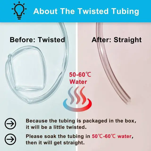 Soak the twisted tubing in 50°C-60°? water, then it will get straight.