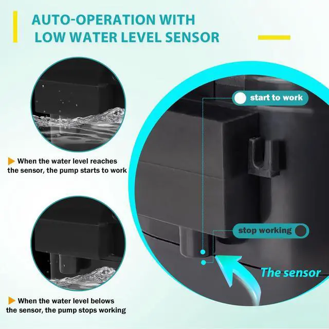 From small aquariums and fountains to DIY projects ,fish tank,water-based crafts,and hydroponics our mini pump with a water level sensor adapts effortlessly to a wide range of applications.