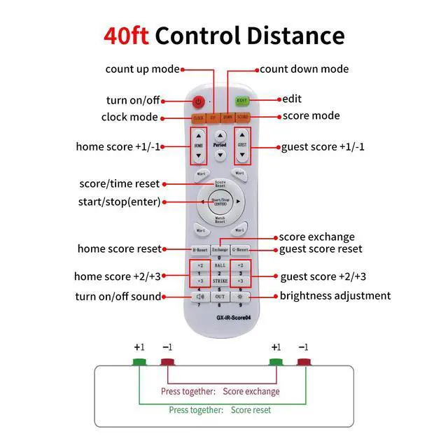 Digital scoreboard with remote and physical button control, the scores are up to 99