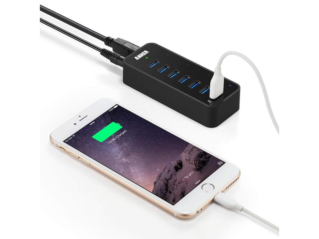 Anker 7-Port USB 3.0 Data Hub with 36W Power Adapter and BC 1.2 Charging Port for iPhone 7/6s Plus, iPad Air 2, Galaxy S Series, Note Series, Mac, PC, USB Flash Drives and More