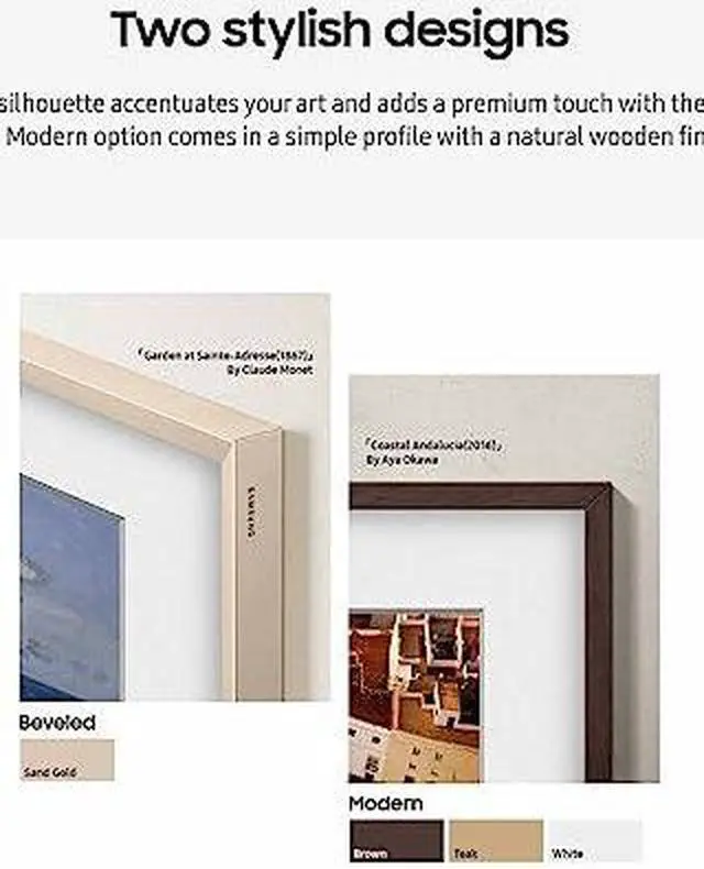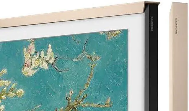 Match the look of your The Frame display to your decor with the Magnetic Metal Bezel for 55" LS03B/LS03A The Frame TV from Samsung. This accessory is designed to cover the existing bezel to change its colorjust like a regular picture frame. This sand gold-colored frame is made to easily attach to your 55" LS03B or LS03A The Frame TV with magnets, covering the existing bezel. At only 0.1" thick, your The Frame TV bezel will still blend with your space, letting you and your guests focus on what is being displayed.