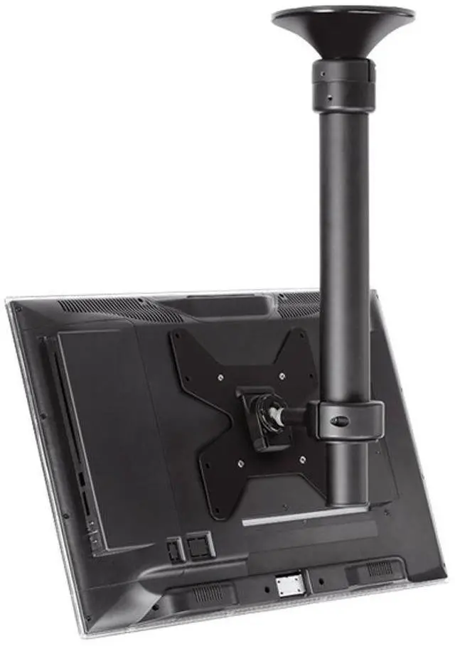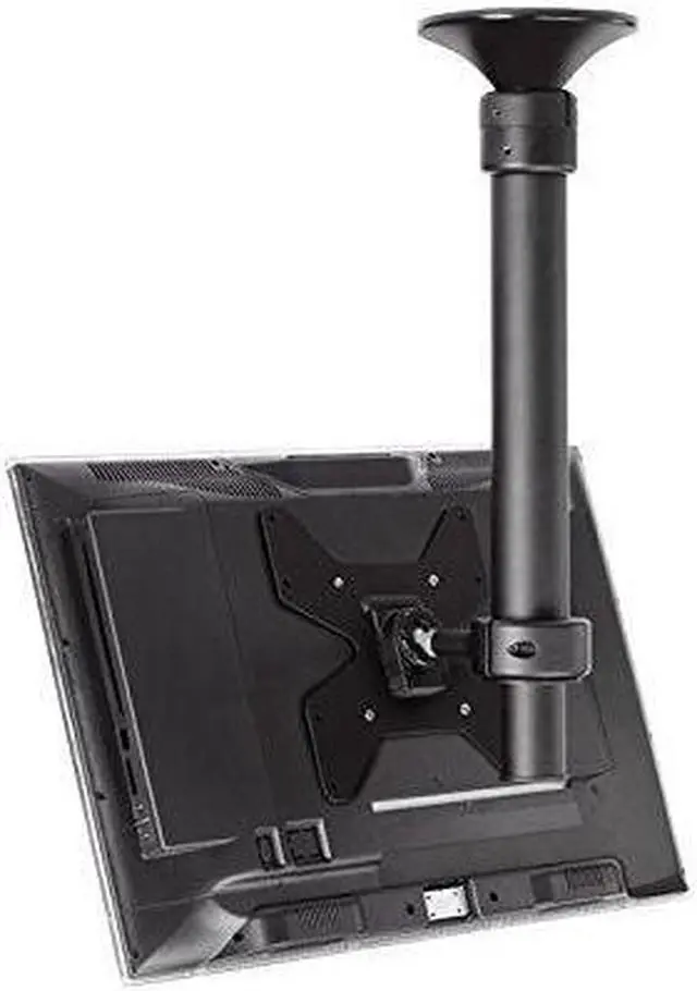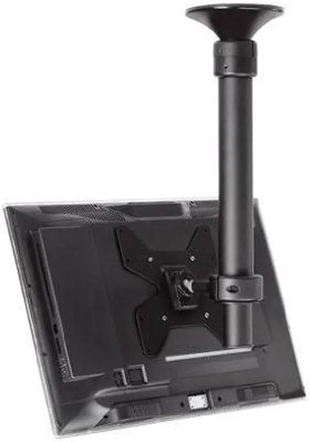 Atdec's TH-1040-CTS Ceiling TV Mount with Short Drop Length is a cutting edge ceiling LCD, LED and Plasma TV mount offering superior display versatility, with the combination of enhanced safety features and hassle-free installation. The donut mounting head effortlessly rotates the screen with 360 around the pole. To maximize display impact the VESA Ball Mount can infinitely adjust display position by 20 in any direction. Display height is also customized with the telescopic pole adjustments. Installation is simple, with in-built safety features to prevent the unlikely event of the telescopic poles separating. Once installed, you are guaranteed a clean and professional finish by fully internal cable management, a dress cover to hide the ceiling connection and a clean pole without screw holes. Angled ceilings are accommodated with the raked ceiling accessory kit (TH-1040-RCA sold separately). You can also customize this mount to Support two screens in a dual back to back (TH-1040-CT-B2B sold separately) or dual vertical configuration (TH-1040-CT-DV sold separately).