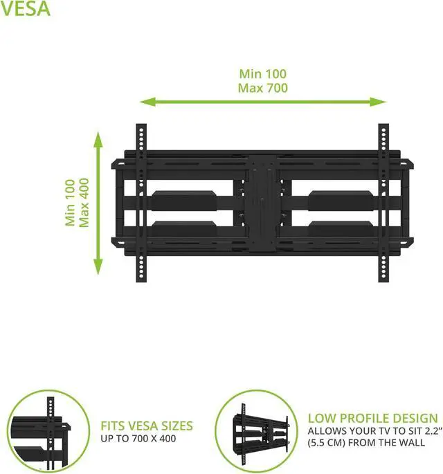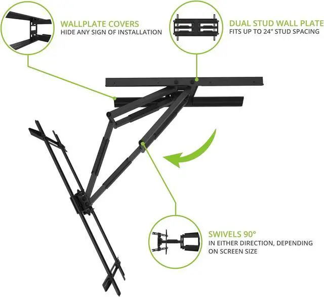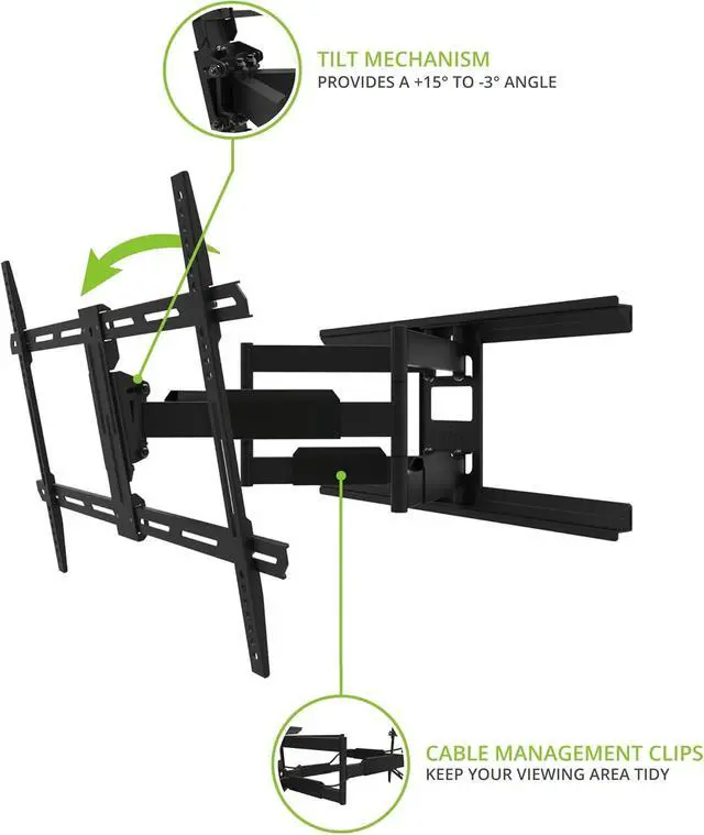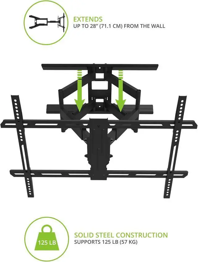 Kanto LDX690 Full Motion TV Wall Mount - Swivel and Tilt Design - 40" to 90" TVs - 125 lb Capacity - 28" Extension - Integrated Cable Management - Easy Installation - Improved Line of Sight with +15° to -3° tilt and 80° Swivel in Either Direction - Low Profile Design - Clean Set Up - Solid Steel - VESA 100x100 to 700x400 - 27.6"W x 2.2"D x 15.7"H - (Black)