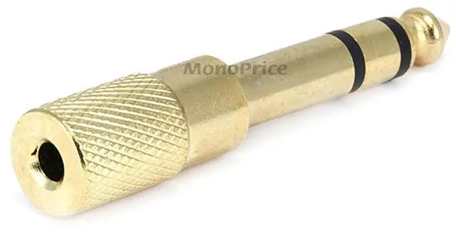 Monoprice Metal 1/4in (6.35mm) TRS Stereo Plug to 3.5mm TRS Stereo Jack Adapter, Gold Plated