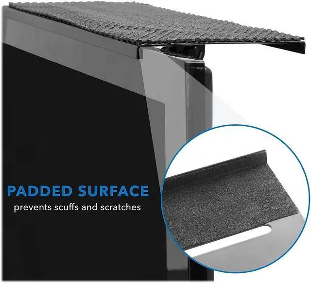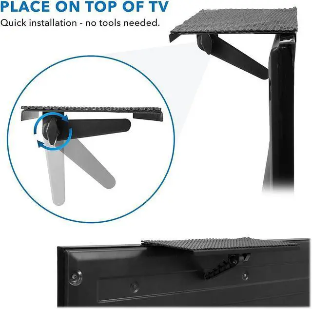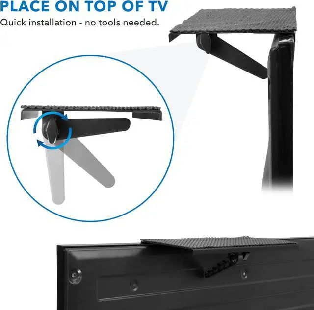 Giving you function, form, and style, MI-897 offers the best way to use the space above your TV. Store your AV components, remotes, speakers, and media boxes with ease. Simply place this shelf on top of your TV and adjust the leg to hold in place. Anti-slip mesh keeps your devices in place. Compact, sturdy, and lightweight, it's able to hold up to 13.6 lbs. It also features built-in air vents for cooler device performance and heat distribution.