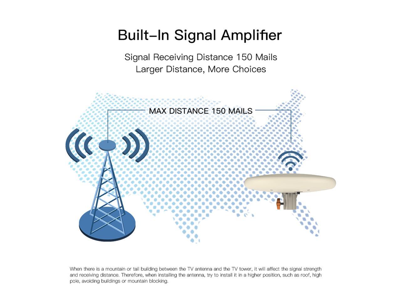 - Up to 150 miles range and watch what you want:up to 150miles depends on it is in the open area witout trees ,mountains blocking the signals. This 150 miles range HDTV antennae enables you to watch local broadcast channels with high definition for free with clearer picture, low noise and access to more free broadcast.