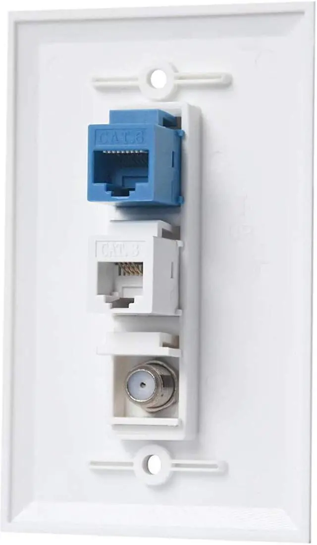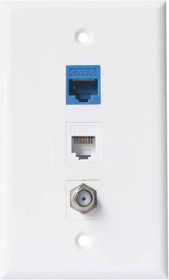 Coax Ethernet Phone Wall Plate - 1 Port Cat6 Rj45 + 1 Phone Jack Cat3 Rj11/Rj12 + 1 Port Coax Cable Tv- F-Type