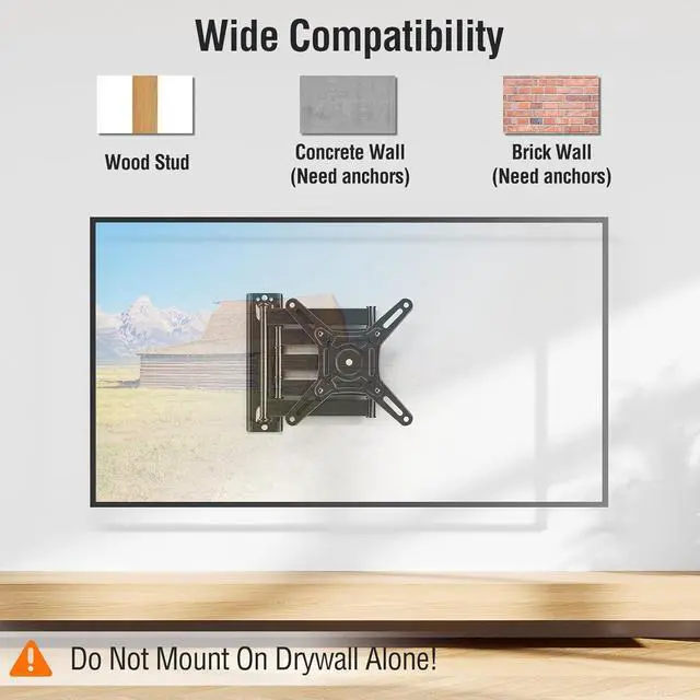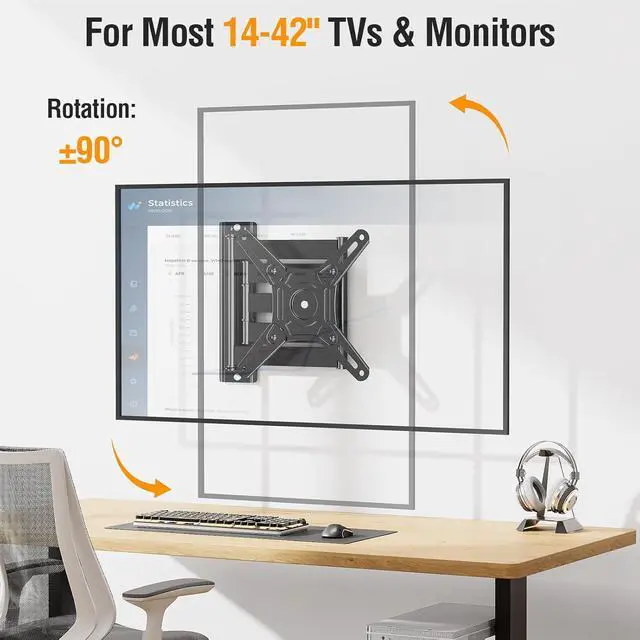 Optimize Viewing Experience - The single stud swivel mount is great for wall corners. It gives you the maximum flexibility in positioning your TV to fit your environment for a comfortable view. The mount can swivel left or right 90° tilt TV +5°/-10° to reduce glare. Universal Monitor Wall Mount - Our monitor mount fits monitors sizes 14-42 inch with VESA patterns from 75x75mm to 200x200mm. This wall monitor mount can keep your monitor to eye level and mount your monitor at an ergonomic sitting position to reduce eyes train and neck pain while saving up much space on your desktop.