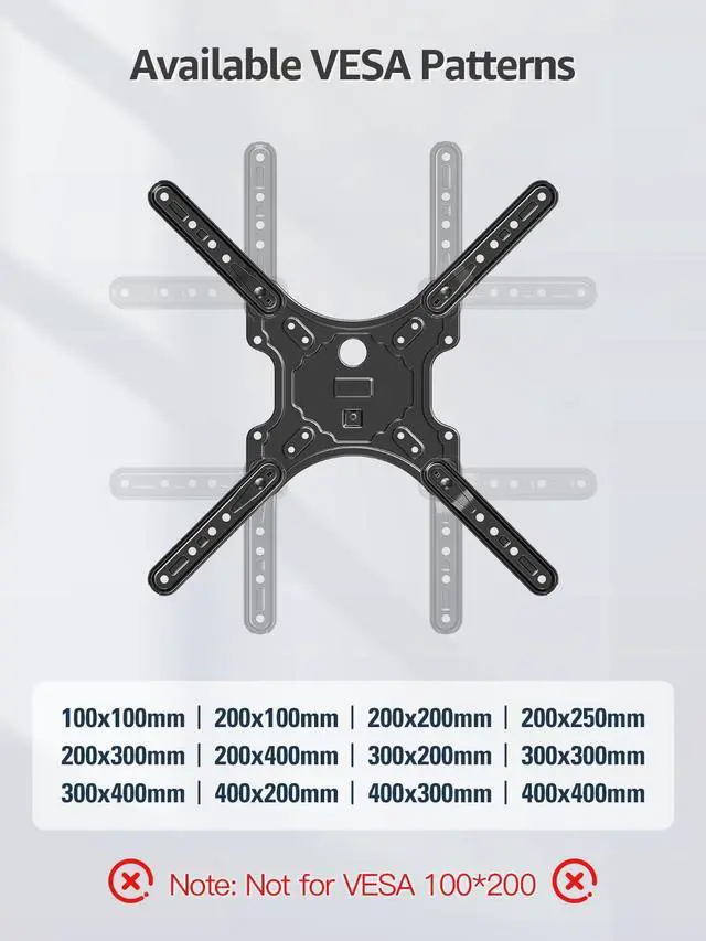 TV Wall Mount Compatibility: MOUNTUP full motion TV mount suitable for TVs with VESA standard mounting holes from 100x100mm to 400x400mm supporting TVs up to 77lbs. This TV bracket fits a wide range of 26 30 32 40 42 43 50 55 58 60 LCD LED OLED 4K TVs. Compatible with LG Sony TCL Vizio Insignia Hisense Sharp Panasonic Toshiba Philips JVC AOC ViewSonic and other brands as long as VESA compatible. Whether mounting on solid brick/concrete wall or single wood stud installation is secure and hassle-free (Note: Do not mount on drywall alone. )Full Motion for