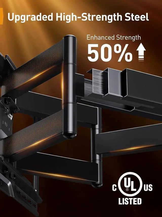 Upgraded High-Strength Steel: This Perlegear heavy duty wall mount TV bracket boasts enhanced strength by 50% for unparalleled stability making it an ideal choice for ultra-large TVs that weigh up to 150 lbs.