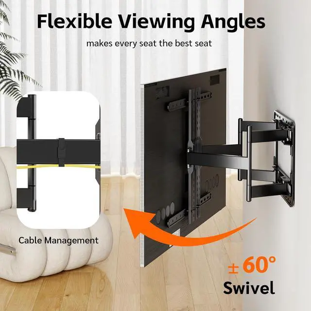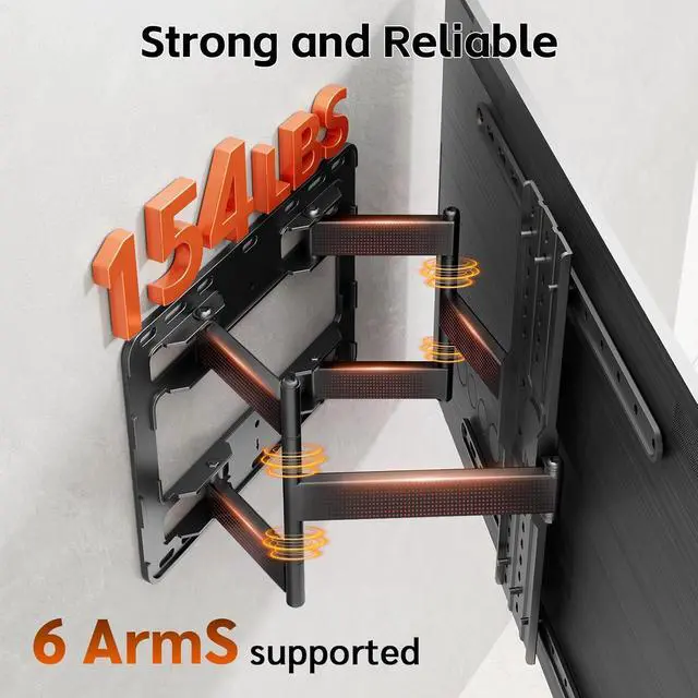 TV MOUNT: Choose our TV Wall Mount for reliable TV stability. With 6 tilt and swivel arms enjoy smooth optimal viewing angles. Capable of holding up to 132lbs it's built from heavy-duty steel and features a durable faceplate and secure screws. Having passed a rigorous 4x max load test this low profile tv wall mount combines strong construction and articulating arms for unmatched safetyQUICK