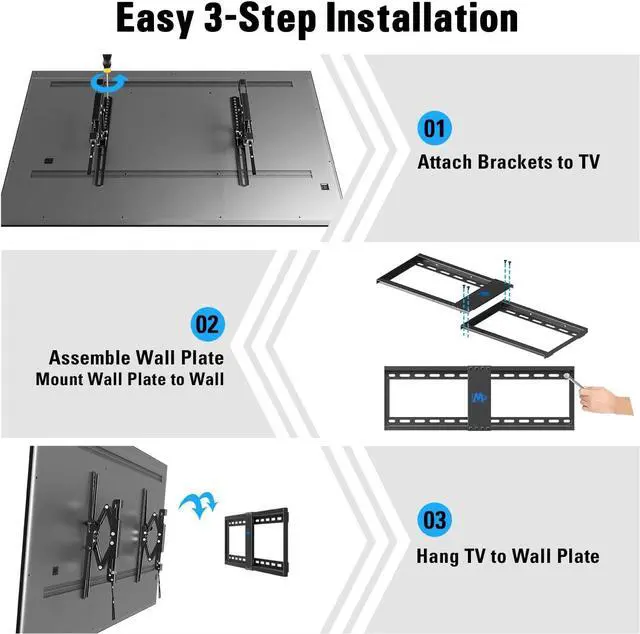 & Stable construction: The advanced tilt TV wall mount are constructed of heavy-duty steel and the technology of robot welding tested strictly to ensure safety for OLED LED LCD Curved Flat TVs. With the open wall plate design you can mount the TV directly over outletsEasy
