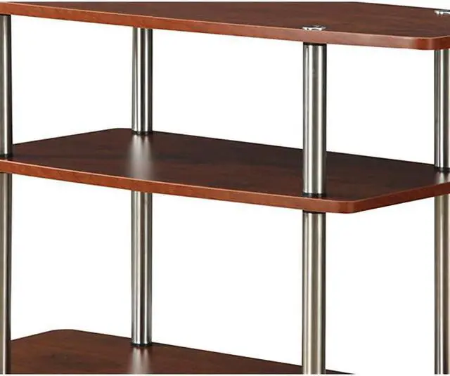 Color: CherryOptimize your space with the Designs2Go 3 Tier TV Stand from. Its open concept design and contemporary style will fit perfectly in your living room or home study. This furniture piece features three ample tiers that provide enough space for all your entertainment essentials. Fashioned from shelves made of particle board and melamine, stainless steel poles and plastic feet, this TV stand was engineered to endure the test of time. Enjoy your favorite shows in no time with its quick and easy 4-step assembly. The Designs2Go 3 Tier TV Stand is available in multiple color finishes. This TV stand is the furniture piece you have been looking for to modernize any room in your home. Look for additional pieces from the Designs2Go Collection from; each sold separately.