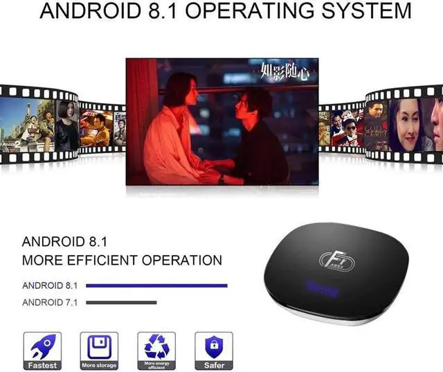 F1 Android 8.1 Tv Box Amlogic S905W Smart Tv Set Top Box Remote Control Quad Core Uhd 4K Vp9 H.265 1Gb / 8Gb 2.4G Wifi 100M