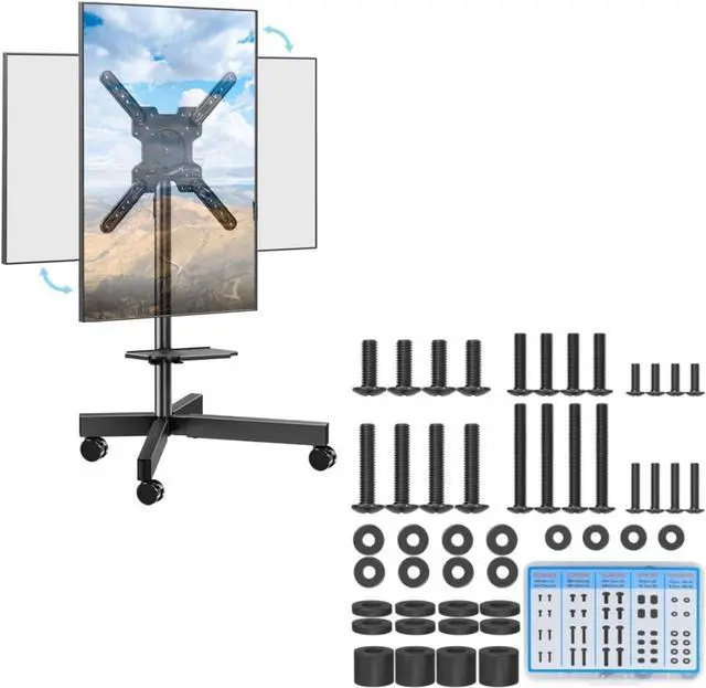 ELIVED Rolling TV Stand for Most 23"-60" TVs, Mobile TV Cart 90° Rotation Landscape to Portrait, Universal TV Mounting Hardware Kit with Box, M4 M6 M8 Screws and Washers Spacers