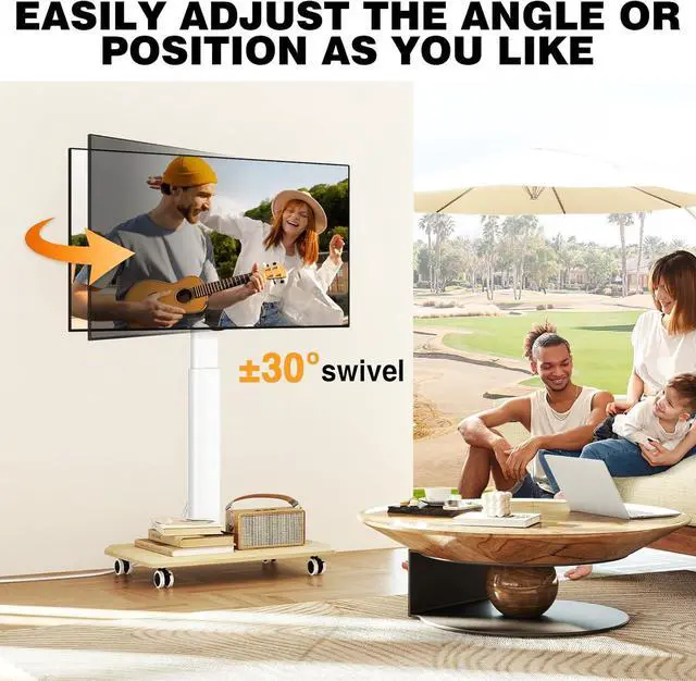 ±30° Swivel and Much More Height Options: Flexible to Meet More NeedsWhile other tv cart rolling tv stand only have 6 or less height adjustments. Our 9 levels of height adjustment is designed to meet different height of more requirements. At the same time, the portable tv stand can swivel ±30° to easily adjust for optimal viewing angle. More for you, this TV stand on wheels includes cable management to keep your equipment and accessories neat and organized.