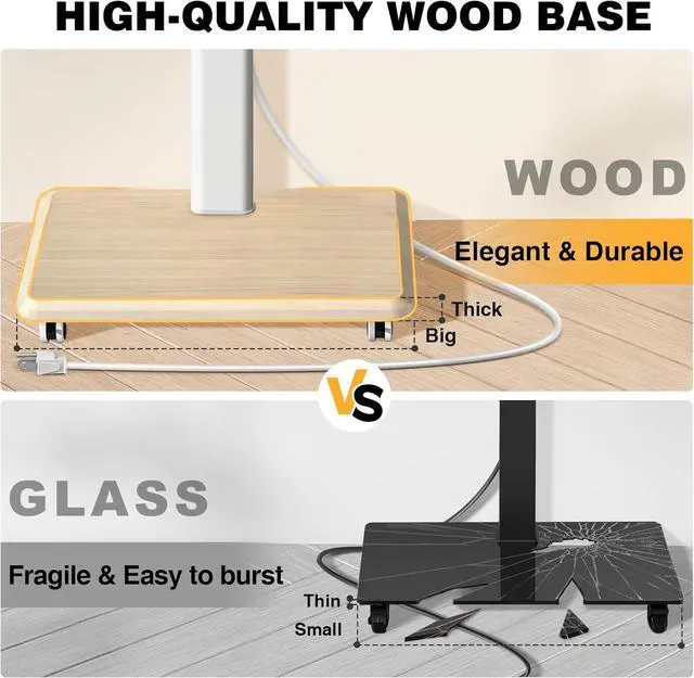 Elegant Wooden Base for Storage: Let Art into LifeUnlike other TV stands, the look of the 70 inch tv stand can completely play the role of a decorative furniture. The warm and bright wooden base and simple modern look add warmth to your home. The base with wheels is 3.2 inch in height and slides can easily into the end of your bed or behind the TV cabinet, saving aisle space. At the same time, its base can also be used to store Router, DVR, Sub, PC, PS4 etc.