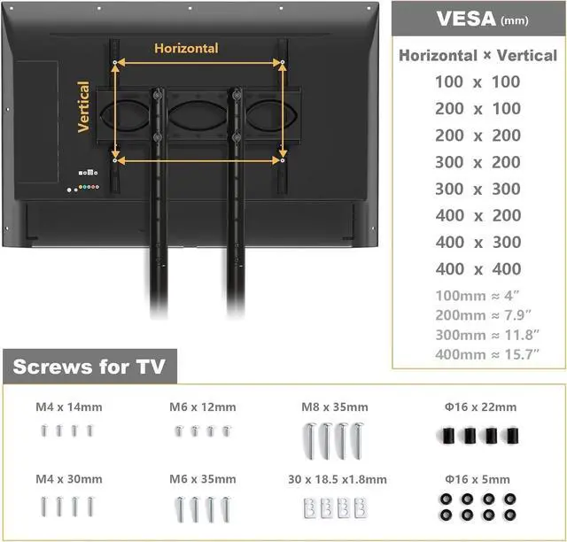 Ultra Strong TV Stand with Wide CompatibilityThis rolling tv stand for flat screens with wheels for 32-75 inch LCD LED Plasma OLED QLED 4K Smart flat/curved screen TVs weigh less than 88 pounds. Make sure your TV/monitor has 4 mounting holes on the back of the screen that are listed from 100x100mm to 400x400mm.