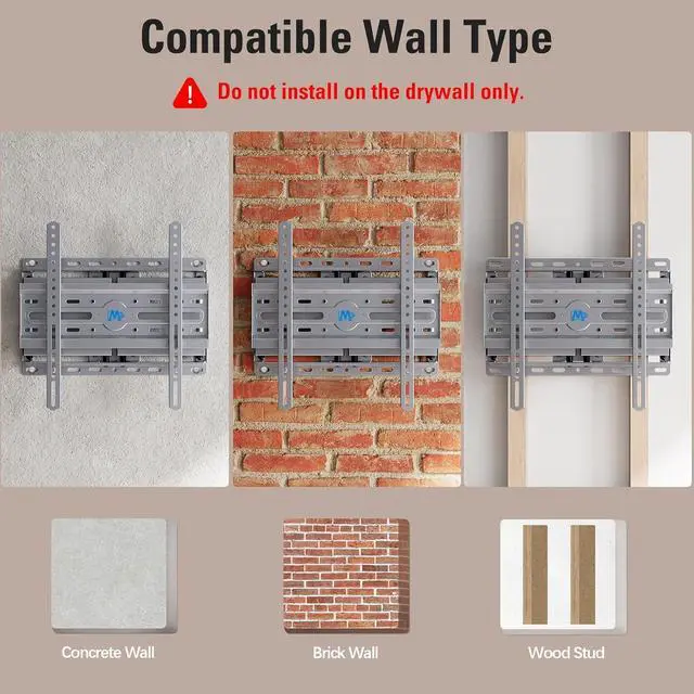 [Easy Installation] Swivel TV mount contains with clear instructions, paper template, level, and pre-labeled packages containing screws and spacers of various sizes. It comes with velcro strips as well to help in managing cords. The concrete anchors is available with Mounting Dream customer service (10x50mm anchor size). None of our TV mounts are just for dry wall.