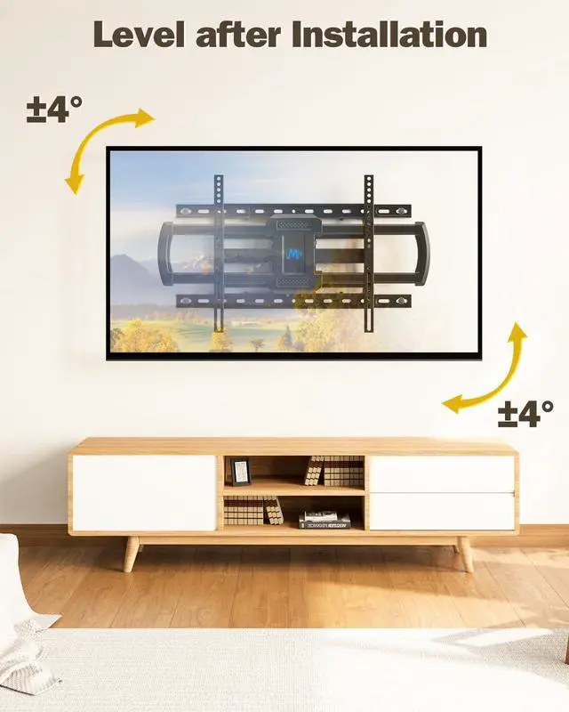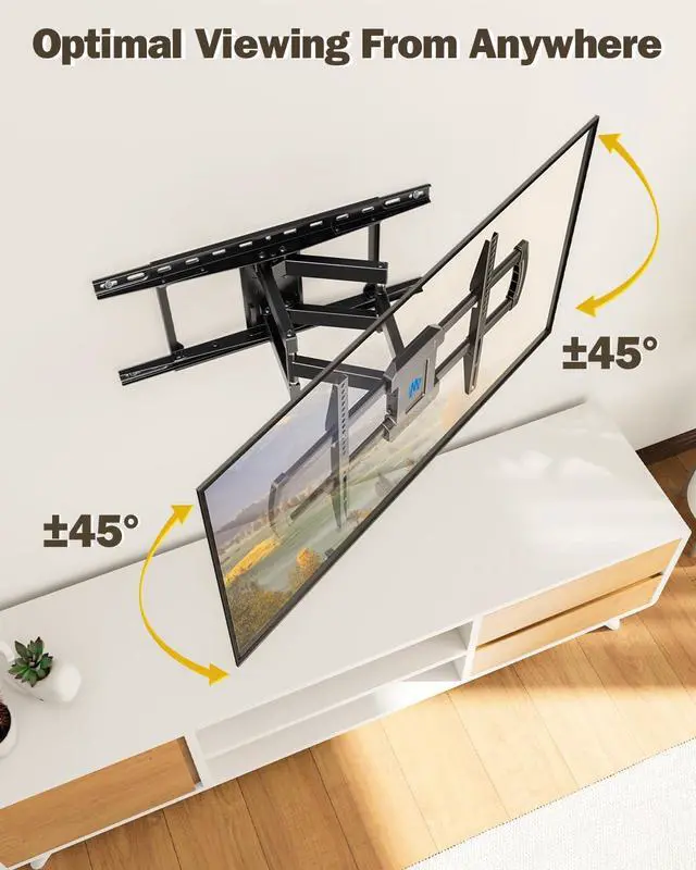 UPGRADE VIEWING EXPERIENCE: Full motion TV wall mounts tilt TV forward 15°/backward 5° to reduce screen glare, neck stain, eye-strain. With up to ±45° swivel, wall mount TV bracket can point the TV almost anywhere. +/-3° rotation adjustments for maximum viewing flexibility.
