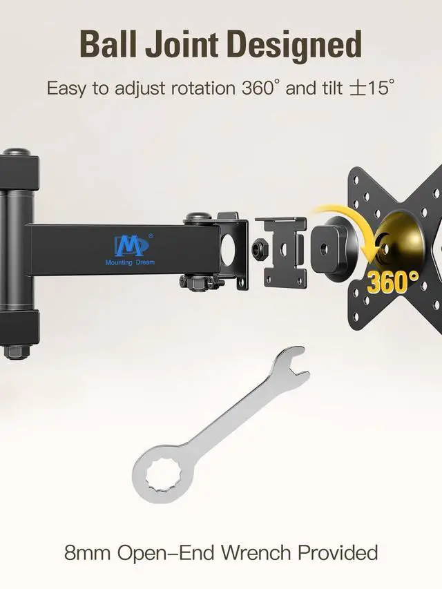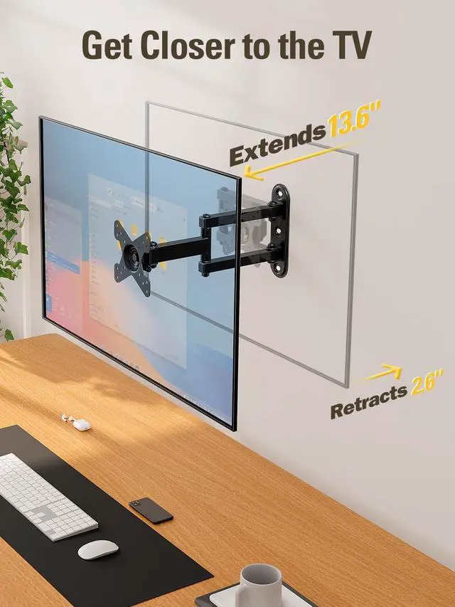 Mounting Dream UL Listed Full Motion Monitor Wall Mount TV Bracket for 10-26 Inch LED, LCD Flat Screen TVs and Monitors, TV Mount with Swivel Articulating Arm, Up to VESA 100x100mm and 33LBS MD2463