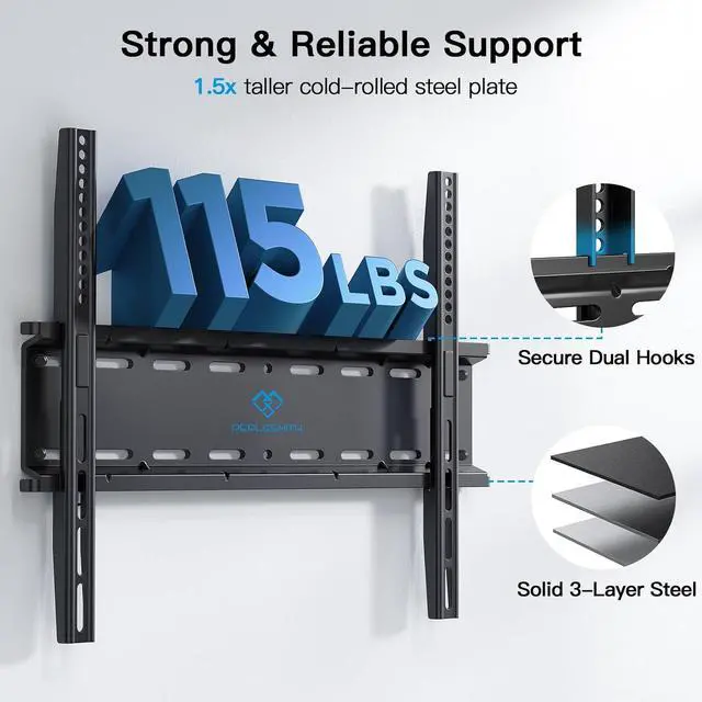 PERLESMITH Fixed TV Wall Mount Bracket, Low Profile Design for Most 26-60 inch LED LCD OLED-4K Flat Screen TVs up to 115lb, Ultra Slim Fixed TV Mount with Max VESA 400x400mm Fits 16 inch Wood Stud