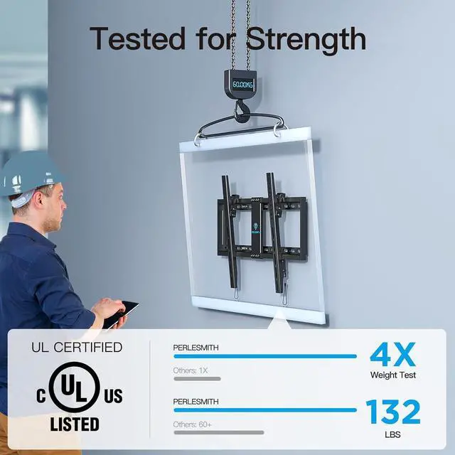 PERLESMITH UL Listed TV Mount for Most 37-85 inch TV, Universal Tilt TV Wall Mount Fits 16- 24 Wood Stud with Loading 132 lbs & Max VESA 600x400mm, Low Profile Flat Wall Mount Bracket PSLTK1