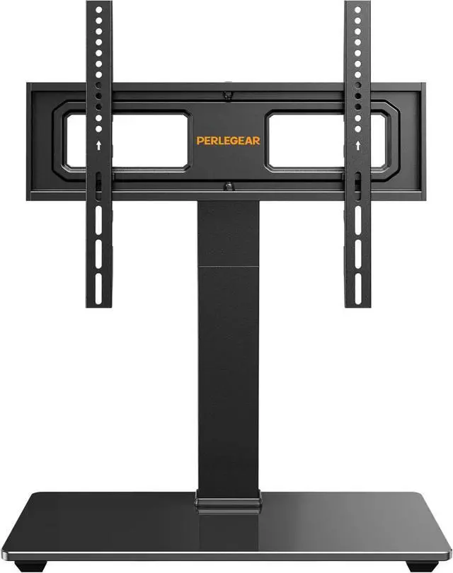 Heavy Duty Tempered Glass BaseThis TV swivel stand is made of high-quality steel to hold up to 88 lbs of weight, The premium 15.75x10.24 tempered glass base with plastic column cover provides ultimate support for your large TV.
