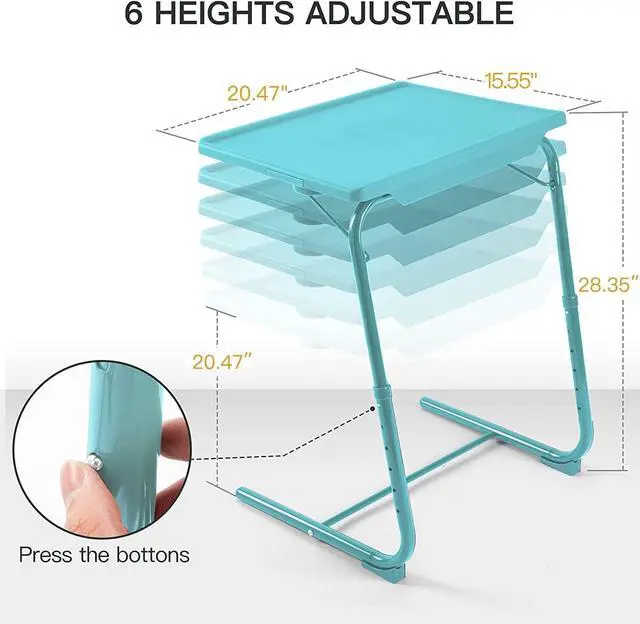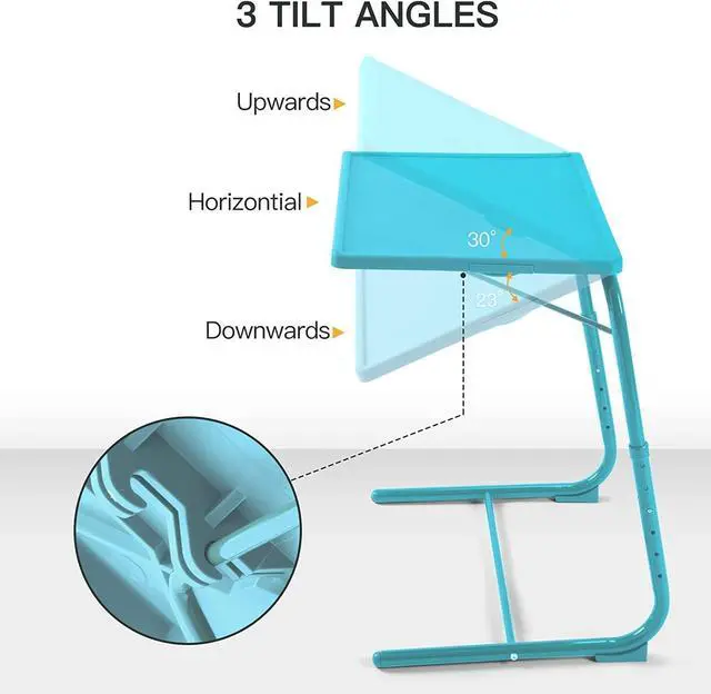 HEIGHT & ANGLES ADJUSTABLE - Our TV trays height can be fully adjusted from 21.53" to 28.74" and can be adjusted horizontally 1 angle downwards and 1 angle upwards . Easily adjust the height and angle to find the most comfortable position so you can work or watch a movie without straining your neck or back