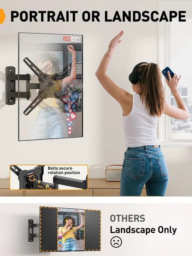 Easy 3-Step Installation: Detailed instructions and mounting hardware are included with the Perlegear single stud TV mount for hassle-free installation. Simply attach the TV brackets, mount the wall plate, then hang your TV.