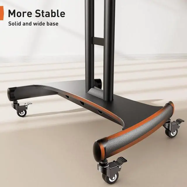 Head to Toe Bravo| Extra Heavy-Duty Stable & Spacious Base This mobile TV stand features a heavy-duty base for excellent balance, keeping your TV secure wherever you place it. Large smooth rubber wheels rotate 360° for effortless movement on hardwood floors or carpet, making it easy to roll your portable TV cart on wheels anywhere.Perfect for living rooms, bedrooms, gyms, offices, schools, malls, airports, nd other indoor or outdoor spaces. This tv stand on wheels combines stability, mobility, and versatility.