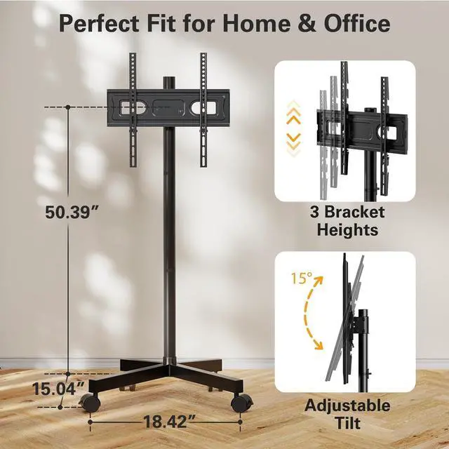 Portable & Multi-Scale Use Move your TV effortlessly from room to room or outdoors. This TV cart on wheels is perfect for living rooms, bedrooms, kitchens, dorm rooms, or even outdoor gatheringsgiving you a versatile TV setup wherever you go.