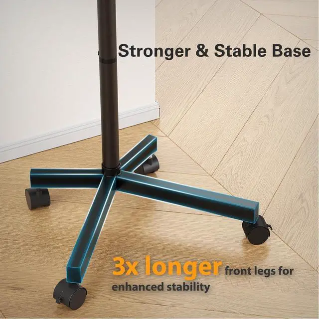 Sturdy & Anti-Tip Design Built with a heavy-duty wide base and extended front brackets for better weight balance. This mobile TV stand ensures strong stability, prevents wobbling, and keeps your TV safely secured even when moved.