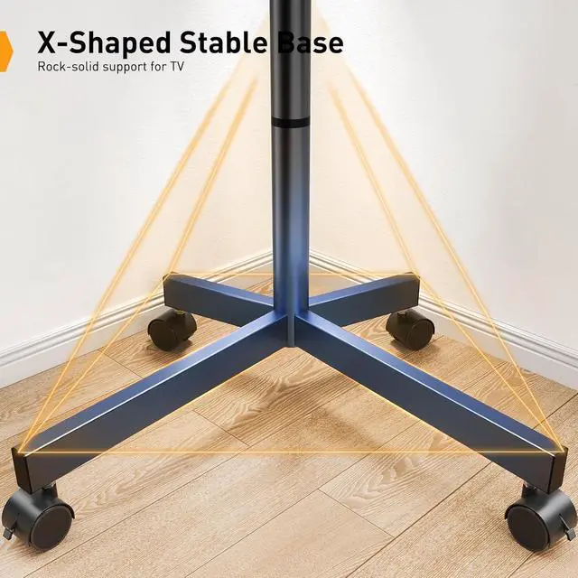 Extra Strong Mobile TV Stand: Our portable TV floor stand has an X-shaped base, which can stably support large TVs up to 88 lbs, while a reinforced bracket prevents tipping. Peace of mind all round.