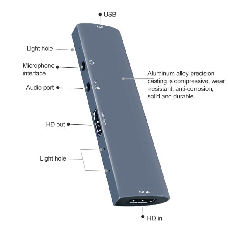 5. Support microphone input, the audio port supports a headset integrated (Note: when the microphone and the integrated headset are used at the same time, the integrated headset has no microphone function)