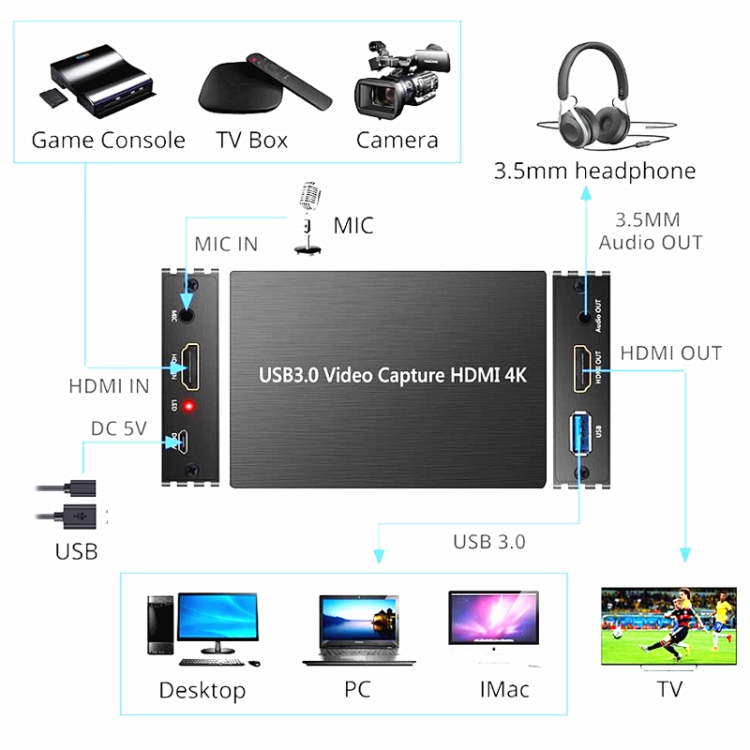 5. USB 3.0 Output Formats Resolutions:360x240/640x480/720x480/720x576/768x576/800x60/1024x768/1280x720/1280x800/1280x960/1280x1024/1368x768/140x900/1600x1200/1680x1050/1920x1080/1920x1200/640x360/856x480/960x540/1024x576