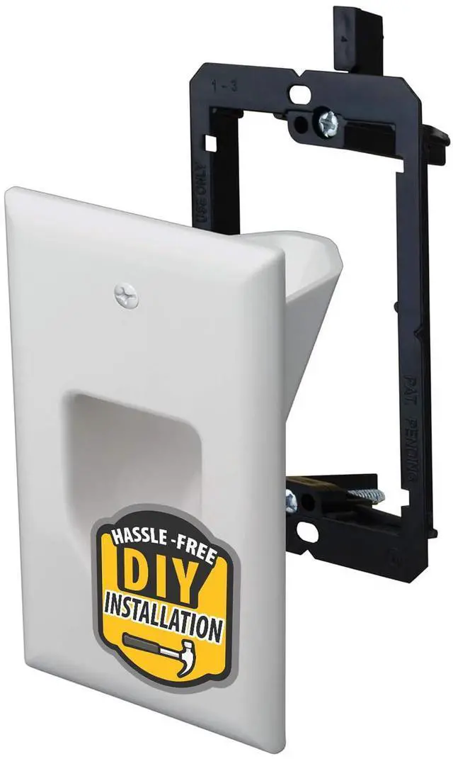 1-Gang Recessed Low Voltage Cable Plate w/ Mounting Bracket