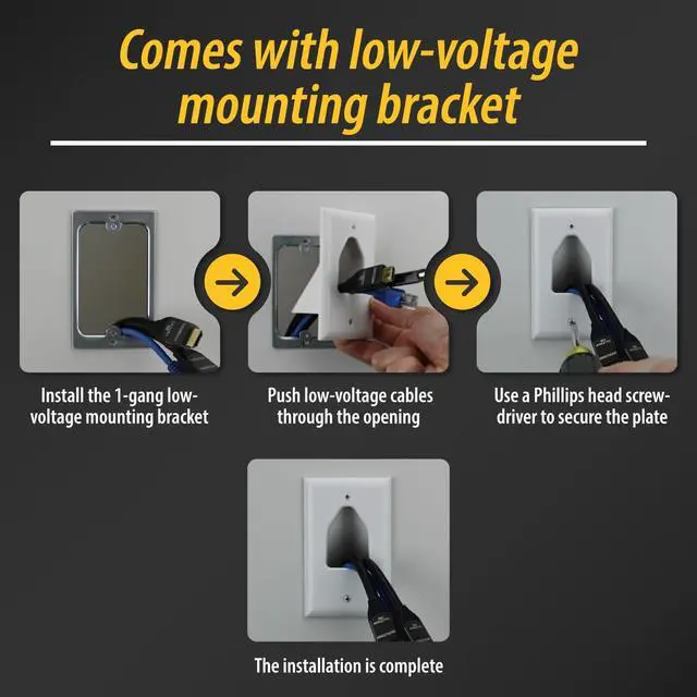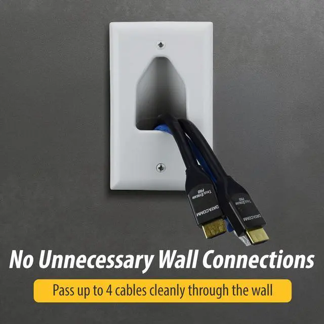 Tired of messy cables cluttering up your home theater? Give it a professional look with DataComm Electronics’ Recessed Low Voltage Cable Plate and Bracket. These plates are designed to hide low voltage cables behind your wall mounted display, amplifier, or other audio and video devices. This quick and easy installation will completely transform the look of your home theater setup.
