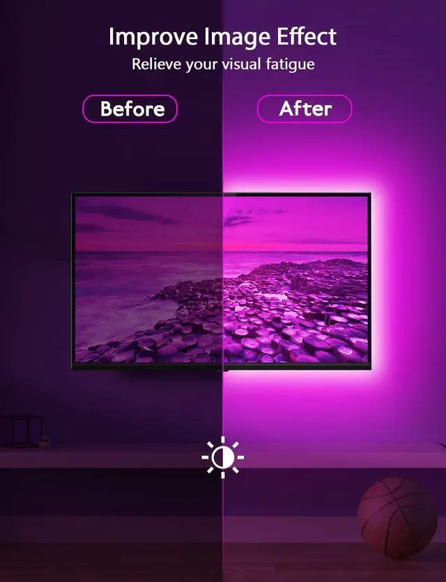 MATICOD led lights for tv with a variety of color options, including music sync function, can be used by connecting usb, after connecting with the tv led backlight through Bluetooth, you can enjoy a more intelligent and convenient control experience!
